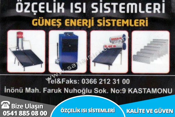 ÖZÇELİK ISI SİSTEMLERİ | Kastamonu Merkezde Güneş Enerji Bakım | çalışma saatleri 09:00 - 18:30 arasındadır.